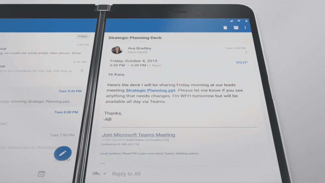 在微软的定义下,尽管Surface Duo有着电话的种种功能,但它的根本是一台“超便携移动PC”。在微软的演示视频中,最常见的镜头就是多任务处理,这种思路也体现在Surface Duo的设计规范中。